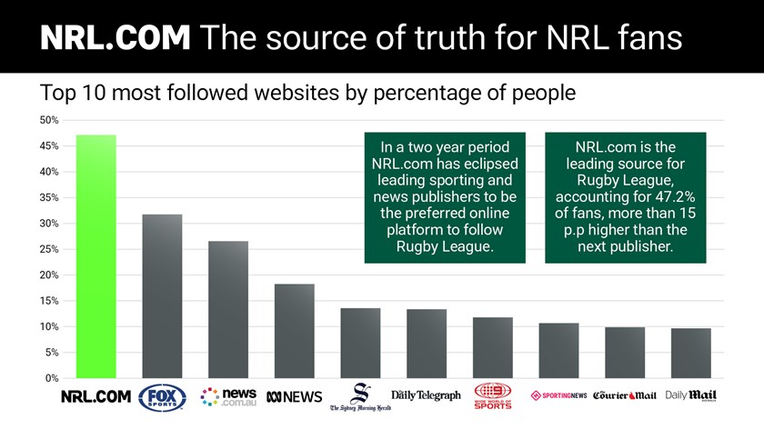 The research backs us as well. In a two year period the NRL.com digital offering has eclipsed sporting and news behemoths to position ourselves as the preferred online platform to follow Rugby League.