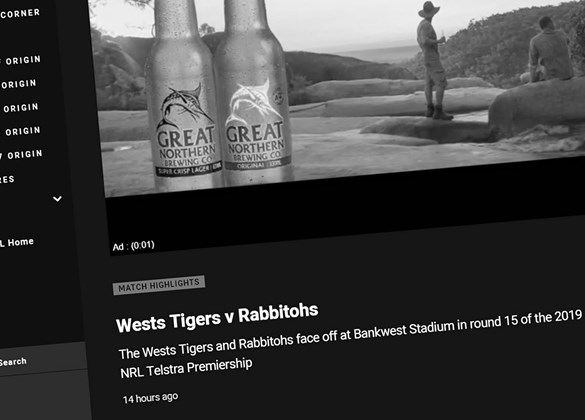 15 second Pre-Roll, sound on across premium NRL video on-demand.