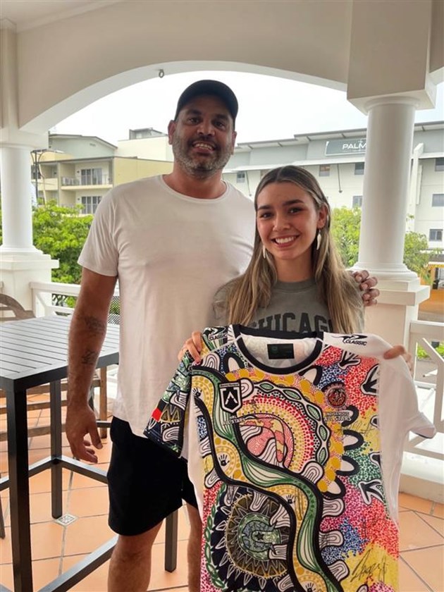 Spending the week in the Indigenous Men’s and Women’s camp the four ambassadors got to experience up and personal what the week looks like from, Captains run to NITV interviews. They were able to watch the team practise their cultural performances and have personal yarns with the players and coaches of both teams. One of the highlights for the students was getting to meet aunty Gail Mabo and attending her ART exhibition run by Gail herself. They also got to attend a leadership dialogue with ARLIC, Uluru statement from the Heart and Greg Inglis.