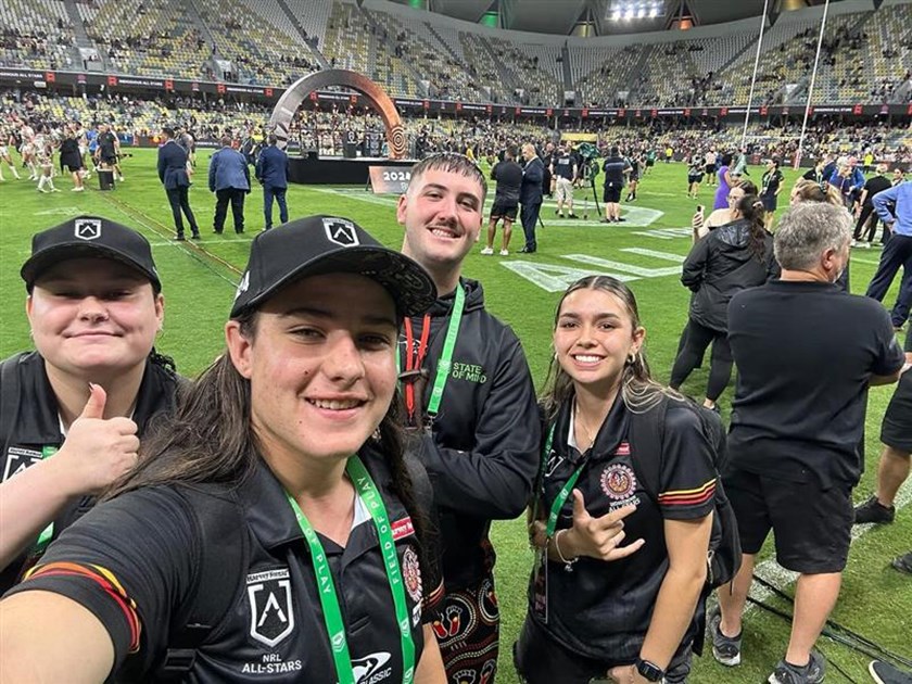 The 2023 NRL Indigenous Youth Ambassadors, Talleira Swain, Noah Doig, Axel Welling and Emillia Cartwright attended the NRL Harvey Norman All Stars on the beautiful lands of the Wulgurukaba and Bindal People.