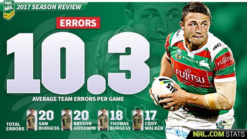 Souths finished the year as the seventh-worst team in terms of errors, and brothers Sam and Thomas Burgess were responsible for 38 of those. No Rabbitoh was in the NRL’s top 10.