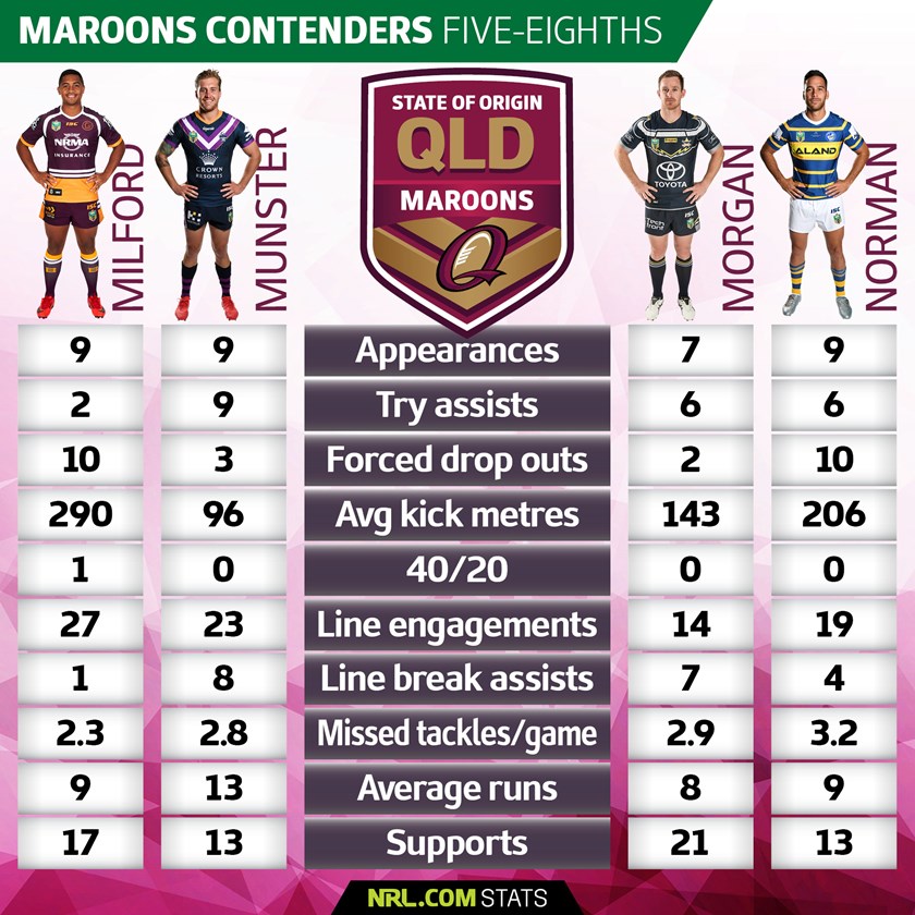 With Queensland heading into a Holden State of Origin series with no Johnathan Thurston and no Cooper Cronk for the first time since 2004, NRL.com Stats crunched the numbers to work out what a new-look Maroons spine might look like.