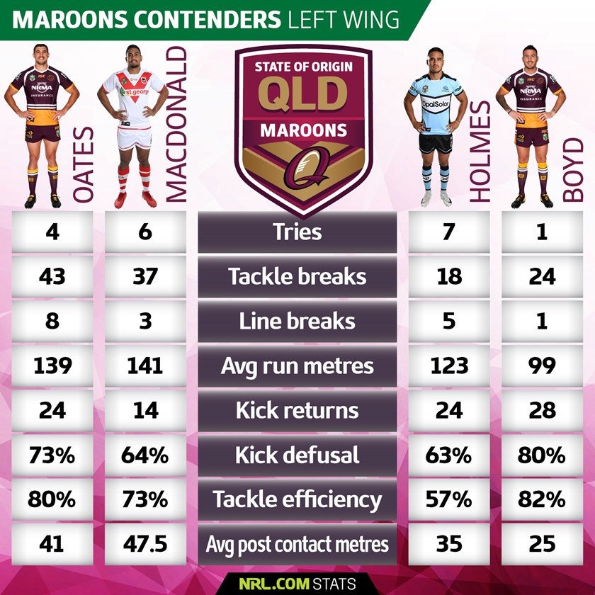 With a little more than a week until teams are named for the Holden State of Origin series opener and Queensland hit by injury and retirements, NRL.com Stats analyses the contenders in the outside backs.