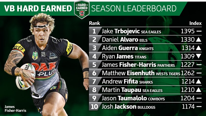 Sea Eagles forward Jake Trbojevic remains a clear frontrunner on 1395 with Eels prop Daniel Alvaro moving up a place to second spot, while Knights workhorse Aidan Guerra moves to third.