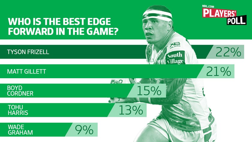 The best edge forward in the game was the closest of all the positional categories, with St George Illawarra's Tyson Frizell edging out injured Broncos forward Matt Gillett.
