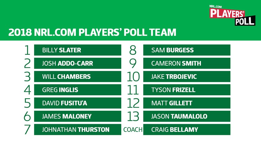 The NRL.com Players' Poll is independent of the National Rugby League. The survey was undertaken by 117 NRL players across all 16 clubs. The survey questions and results have not been designed or endorsed by the NRL or the Rugby League Players Association (RLPA).