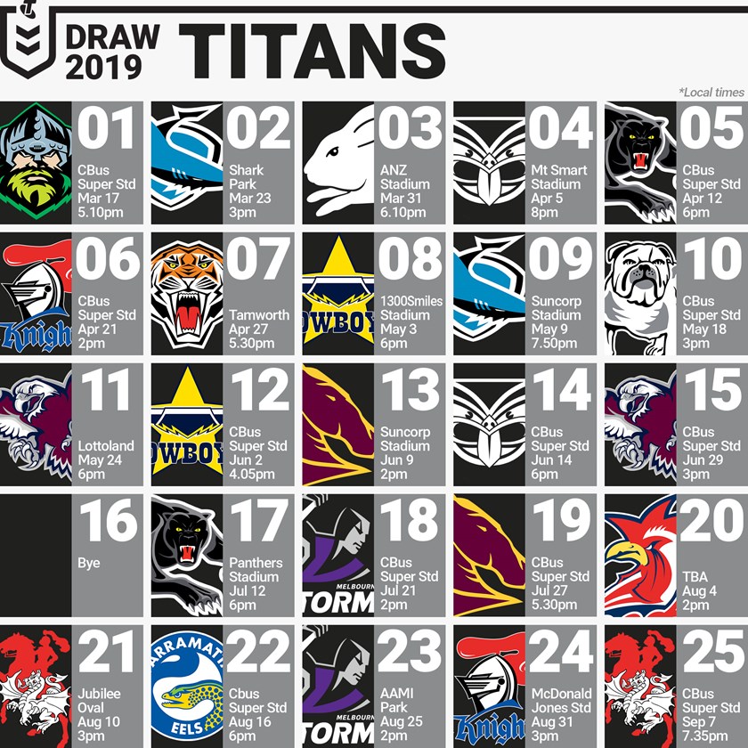 Here is all you need to know about the Gold Coast Titans' 2019 Telstra Premiership draw.