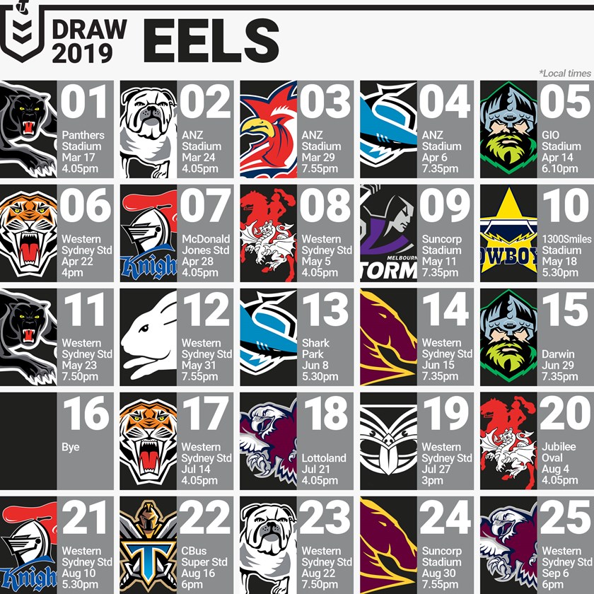 Here is all you need to know about the Parramatta Eels' 2019 Telstra Premiership draw.