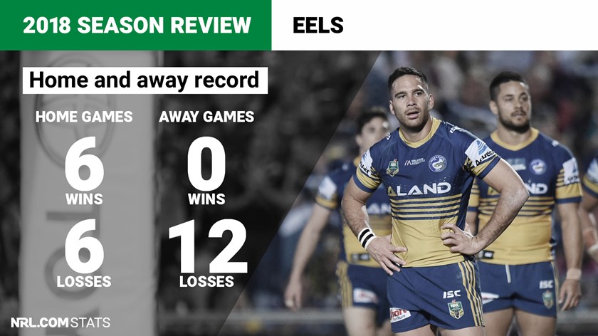 The Eels' home record actually finished up not too bad – it was a bit below what the top eight sides produced at home but 50% isn't disastrous. What is disastrous is the club's failure to win a single away game all season. That 0-12 record mirrors their away record last time the club picked up the wooden spoon in 2013, with the 2016 Knights the last team to finish with the same winless road record.