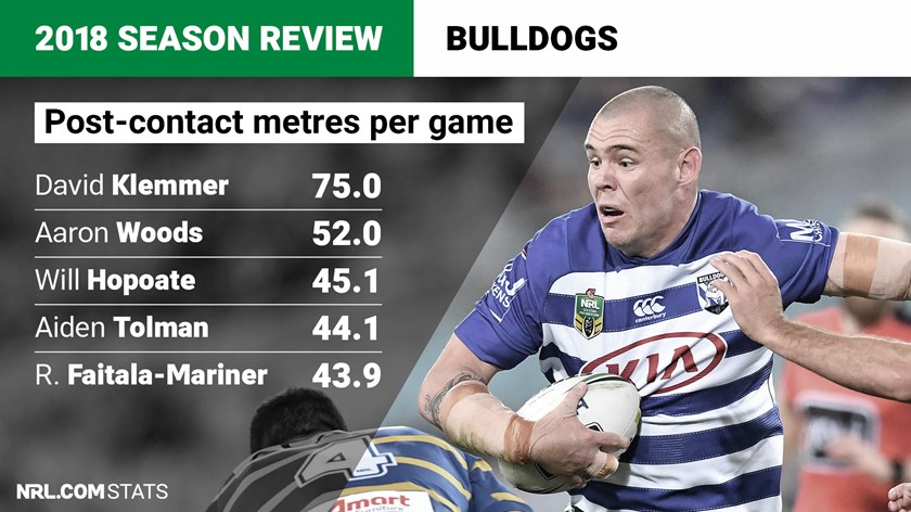 The Bulldogs were the second-best team in the league at racking up post-contact metres with 527 per game, behind only the Roosters.