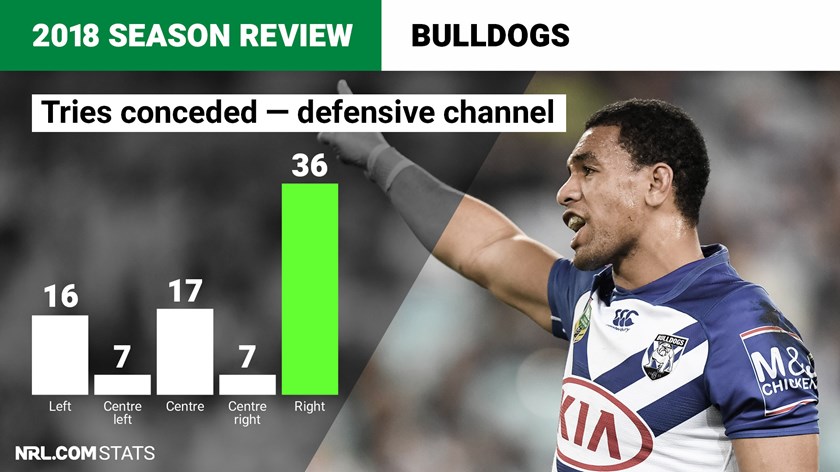 The Bulldogs' defensive record was not as good as any of the top eight teams, and when compounded with an inability to score for much of the year, it made it tough to win games. Still, their final tally of 83 tries conceded through the regular season was only three tries worse than the Dragons and Broncos so their defence shouldn't have too far to evolve.