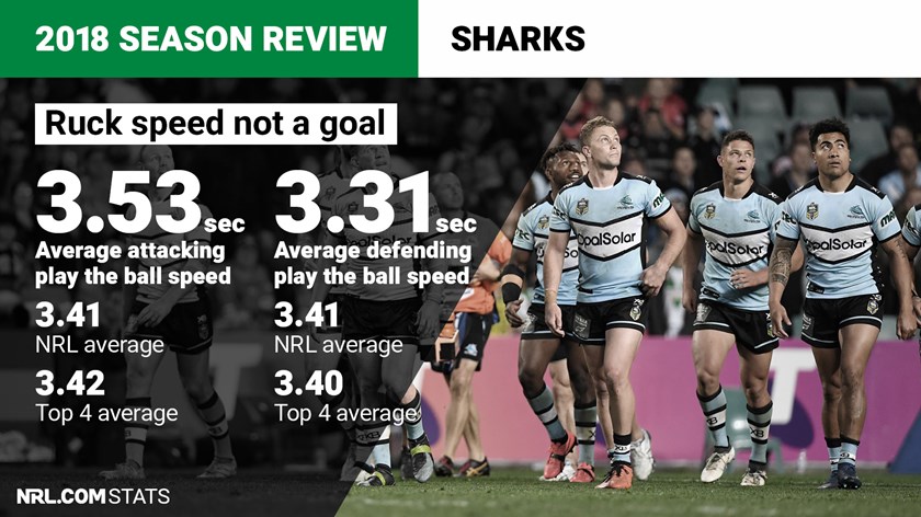 Fast play-the-balls in attack and slow play-the-balls while defending clearly aren't top of the Sharks' priority list because they finished at what would look like the undesirable end of both categories. Cronulla's average play-the-ball speed of 3.53 seconds was the slowest of any club.