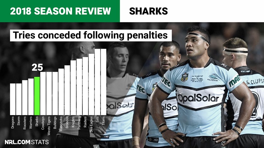 Cronulla's 201 penalties conceded was seventh-most but they didn't get punished in terms of tries conceded from penalties, at fifth-fewest (25).