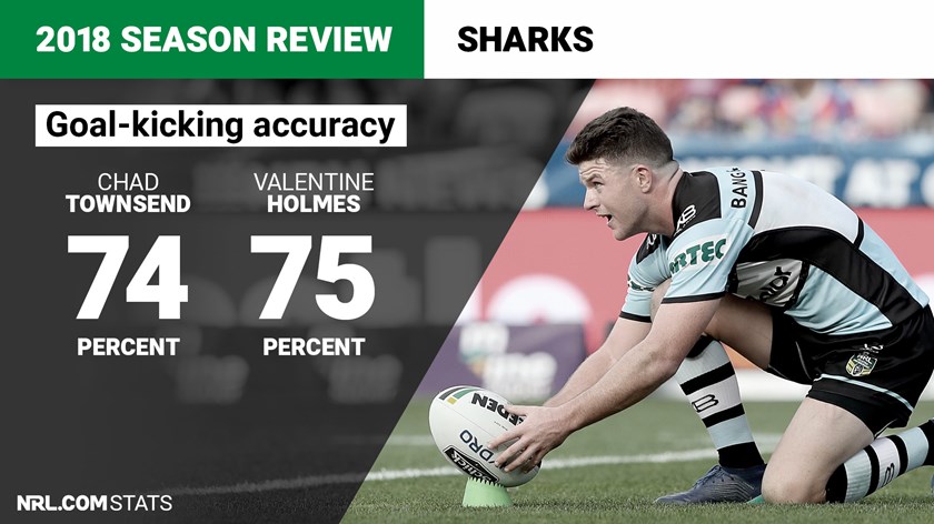 Turning four points into six wasn't Cronulla's strongest suit in 2018. The departure of James Maloney to Penrith left Val Holmes, Chad Townsend and Matt Moylan in a three-way shoot-out for the responsibility, with Townsend (74%) earning it to start the season before Holmes (75%) eventually took over five weeks out from the finals.