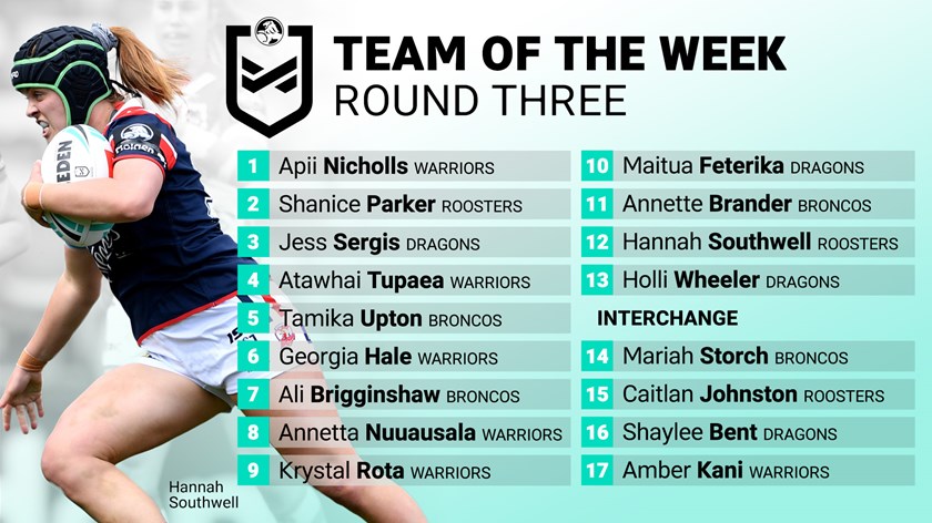 The final round of the NRL Holden Women's Premiership saw some big performances from some of the lesser known players, while a few familiar faces feature again as their form continues.