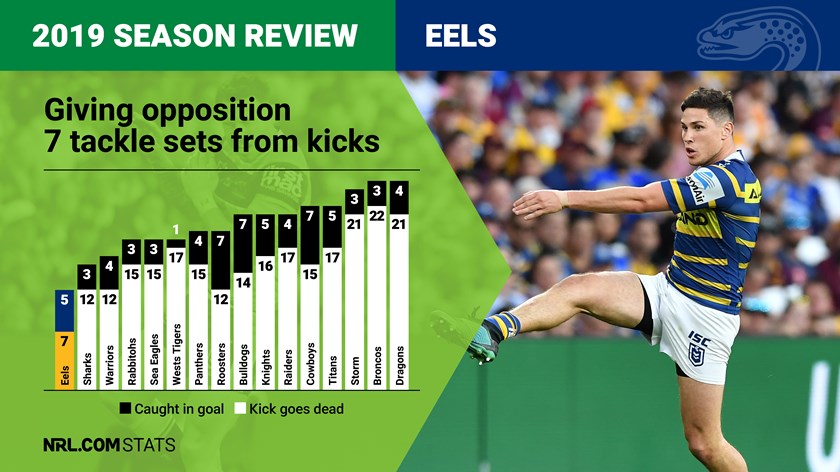 While there is growing support for the contentious rule to be altered, currently a seven-tackle set from an attacking kick is one of the biggest momentum-changing plays in the game as a team goes from a try-scoring situation with momentum to potentially being forced into defending an attacking kick seven plays later, and the Eels were better than anyone at avoiding that problem in 2019.