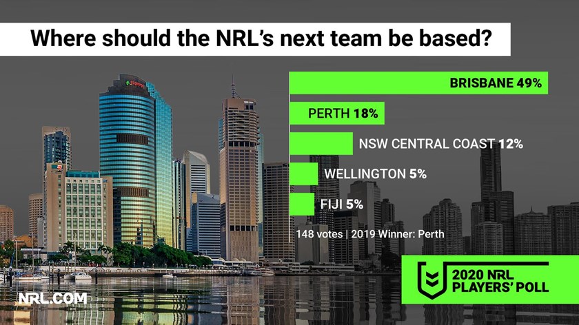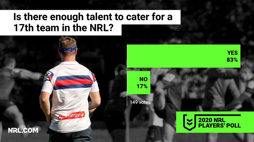 The players don't share the same concerns held by some at head office, who believe there may be a shortage of quality footballers required for an additional team. A total of 83 per cent of players have encouraged the NRL to push ahead with plans.