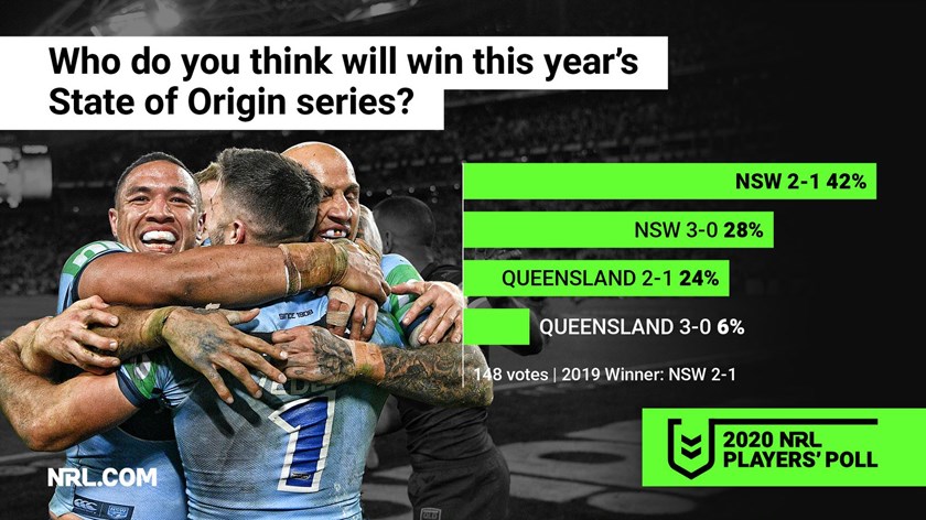 As expected, the NSW Blues are tipped to win their third consecutive State of Origin series. A total of 70 per cent of players have predicted Brad Fittler’s men will again lift the shield at the end of the year, with 28 per cent of players polled tipping a series whitewash.