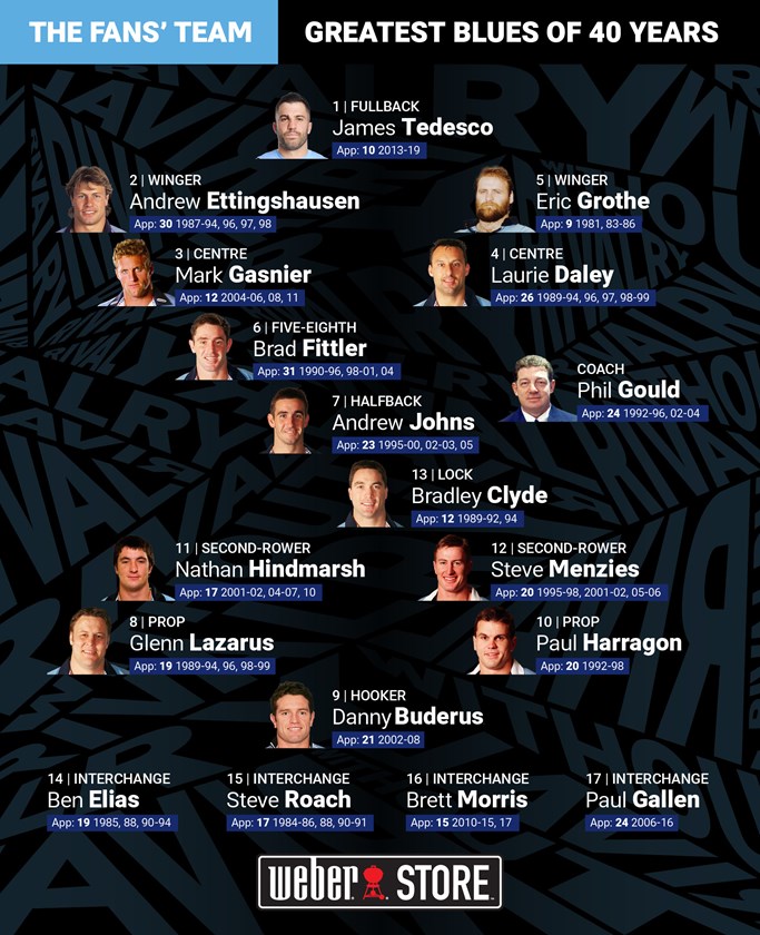Immortal Arthur Beetson and modern-day greats Cooper Cronk, Paul Gallen and Darren Lockyer are among a host of unlucky players after fans chose their all-time Maroons and Blues teams.