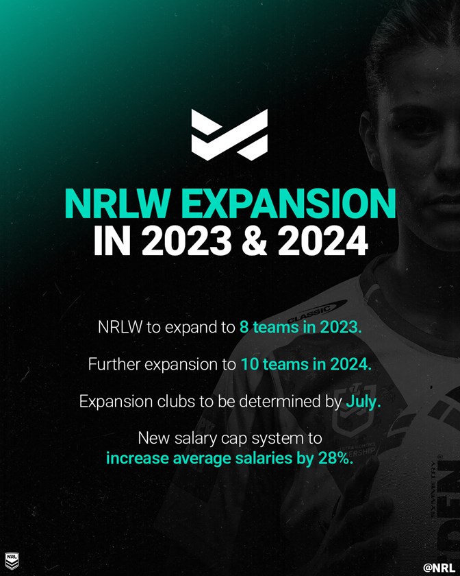 To ensure new teams have time to prepare and allow further talent development, the 2022 NRLW season will remain at six teams before expanding to eight teams in 2023 and 10 teams in 2024. The Commission will determine new licences by July this year.