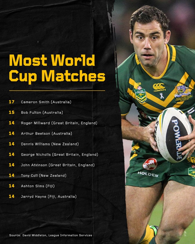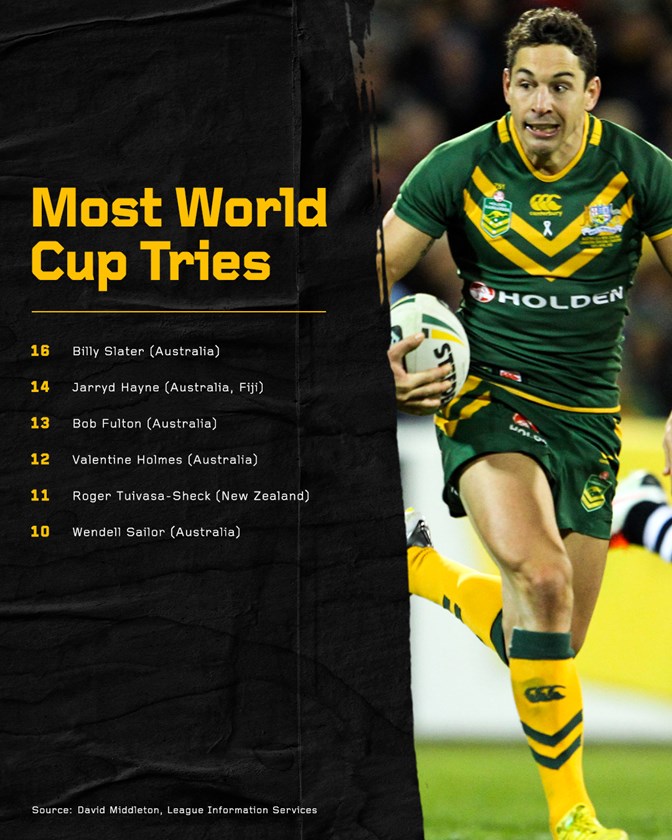 The Kangaroos hit back in style four years later in England, racking up 126-0 in their quarter-final and semi-final demolition of the USA and Fiji before dismantling New Zealand 34-2 in the Final at Old Trafford thanks to doubles from Slater and Brett Morris.