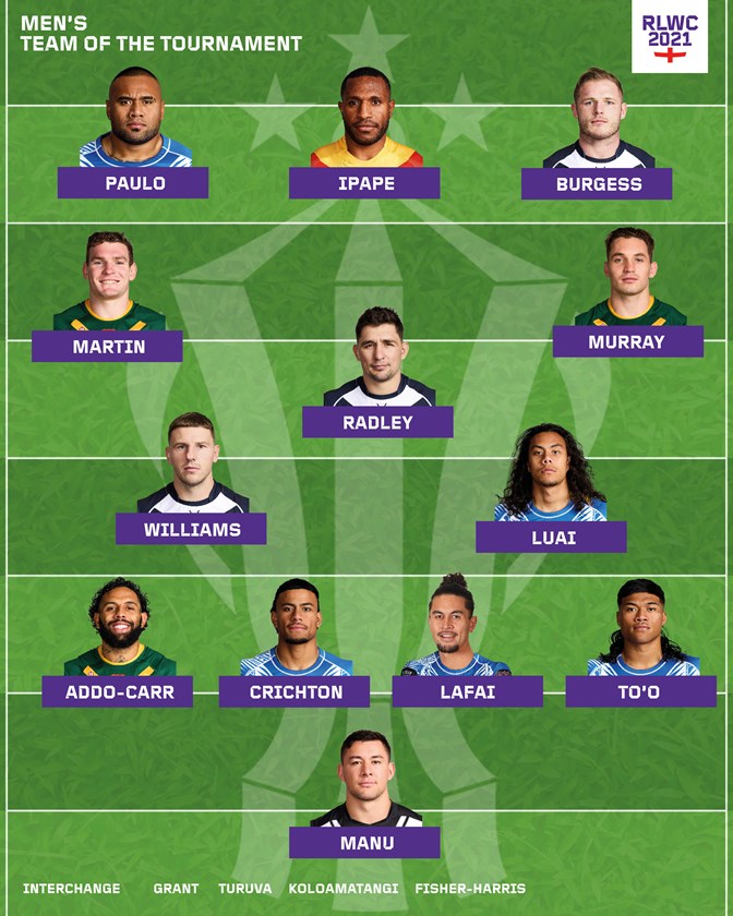 For Samoa, their talisman Jarome Luai makes the Team of the Tournament, as well as semi-final hero Stephen Crichton, Brian To’o, Tim Lafai, and captain Junior Paulo.