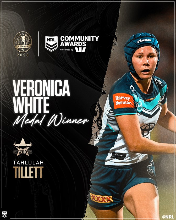 The National Rugby League (NRL) is pleased to announce Tahlulah Tillett as the winner of the 2023 Veronica White Medal – Woman of the Year, presented by Westpac, for her outstanding community involvement.
