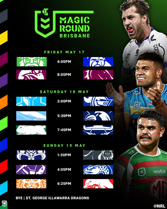 With a bye while players are out for Origin I in Round 13, Wests Tigers play against the Dragons 48 hours after the series opener. In Round 16 and 19 – when Origin players will be out – they play the Raiders and Sharks, with the Roosters and Rabbitohs the sides they will back up against in Round 17 and 20 respectively.