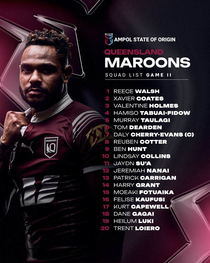 Another Maroons stalwart Dane Gagai – who played 22 Origins between 2015 and 2022 – has earned a return to the representative arena as 18th man, while Heilum Luki and Trent Loiero have been named in the extended squad as reserves.