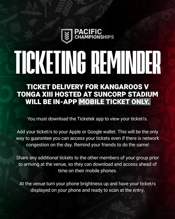 Tonga XIII: No game day changes for Tonga who line up 1-17. Grand final hero Paul Alamoti has been handed his Test debut while Manly pair Lehi Hopoate and Taniela Paseka also play their first Test match. Huddersfield’s Tui Lolohea is the only member of the squad returning from the Super League and teams up in the halves with Dolphins young gun Isaiya Katoa. Veterans Addin Fonua-Blake and Felise Kaufusi are the starting props with Jason Taumalolo, Haumole Olakau'atu and Eli Katoa making up an all-star back row. The bench also boasts plenty of firepower with Keaon Koloamatangi, Paseka and Sitili Tupouniua joined by Panthers dynamo Soni Luke, who played four Tests at the 2022 World Cup. Tolu Koula is 18th man.