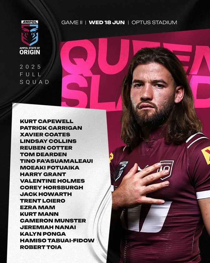 Slater indicated that Capewell could start in the second-row after being recalled to the squad following his form for the Warriors, while Mam was likely to be 18th man.