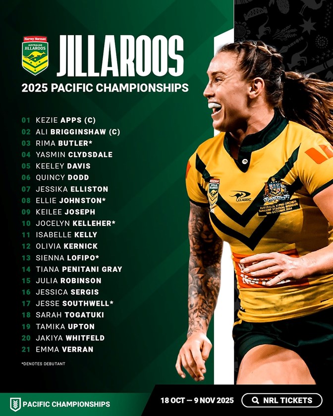 The Jillaroos have the bye in the opening week of the Pacific Championships before they open their campaign against Samoa at Suncorp Stadium.