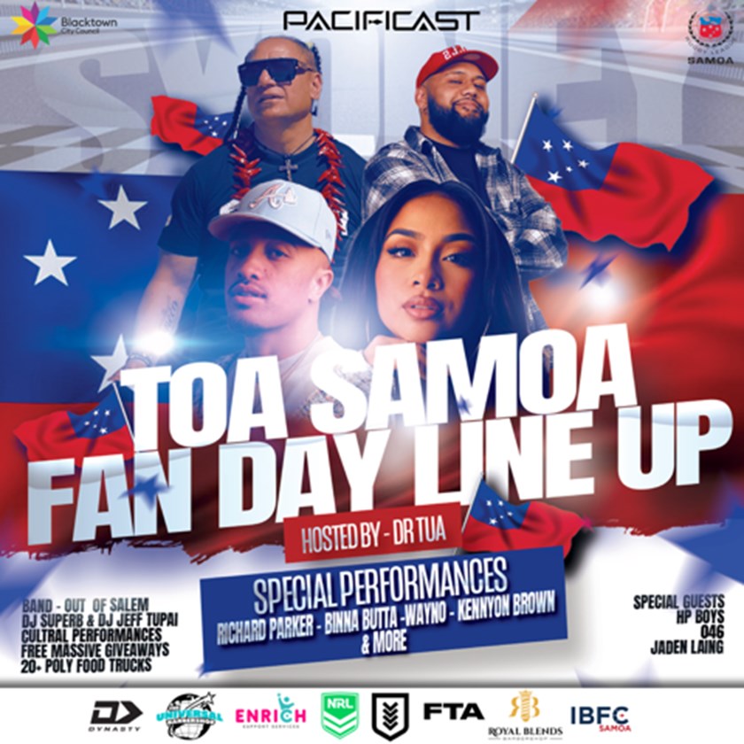 Toa Samoa players expected to be at the fan day between 4.00pm and 6.30pm.