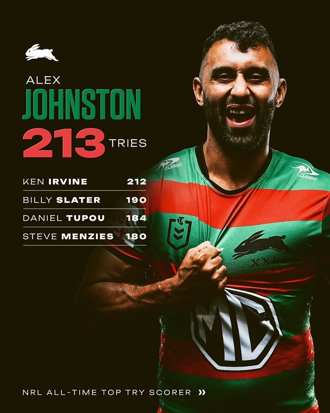 Johnston, who returned to the field after a 16-minute stoppage wearing a new jersey with a gold No.2 on his back, has played 245 NRL matches since debuting for Souths in 2014.